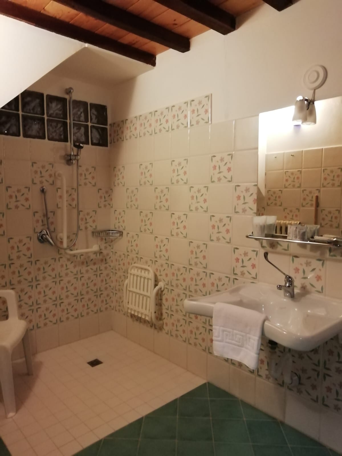 La camera al piano terra è priva di barriere architettoniche, ha sanitari ergonomici e doccia a filo con seggiolino.