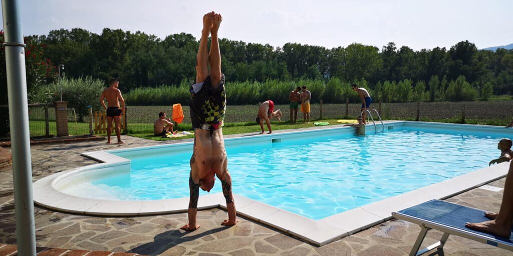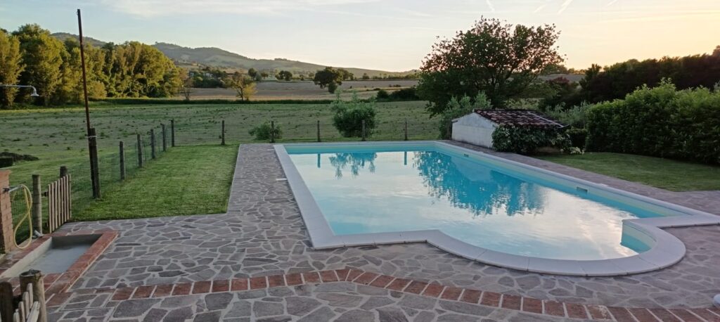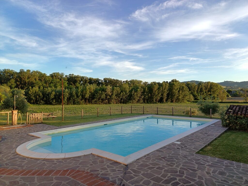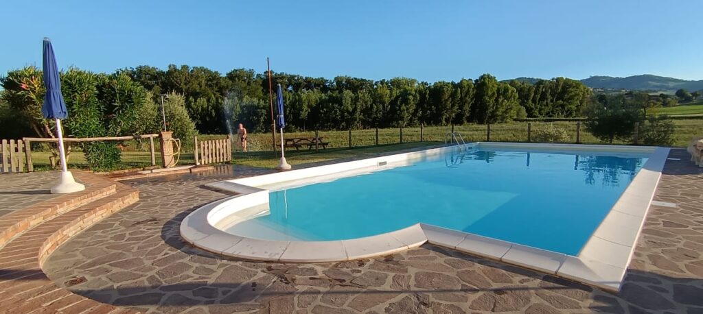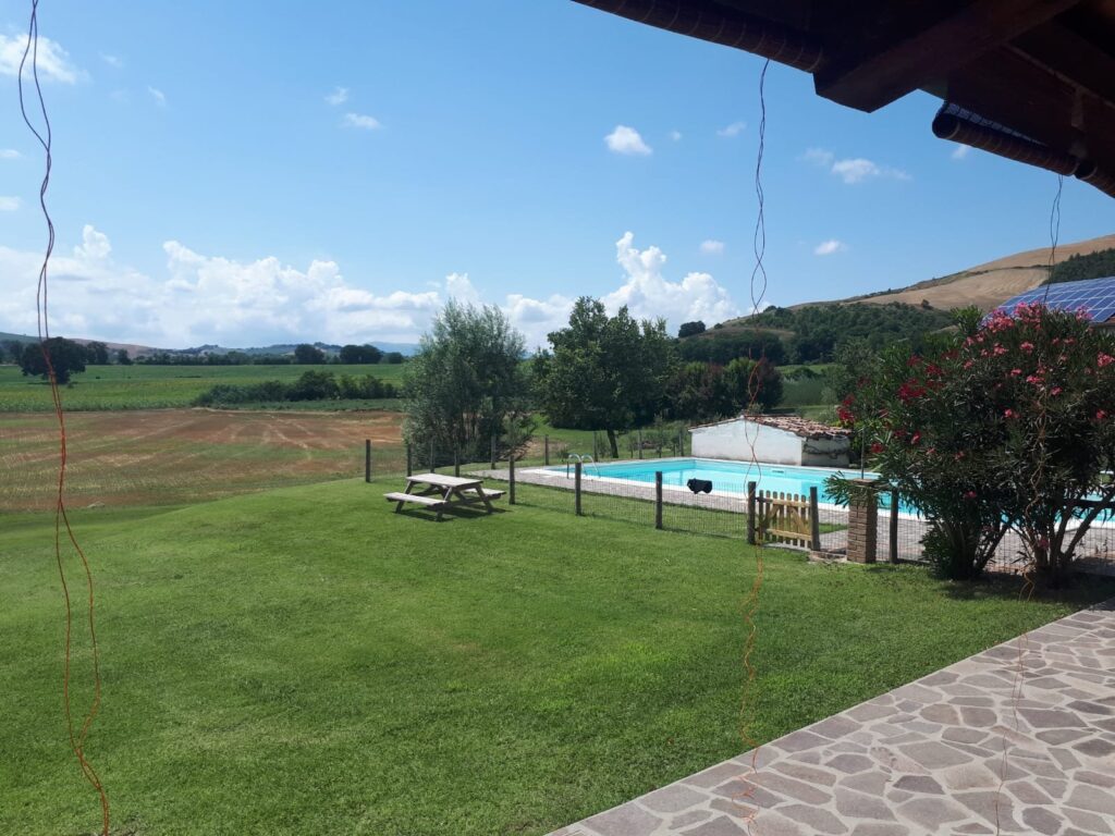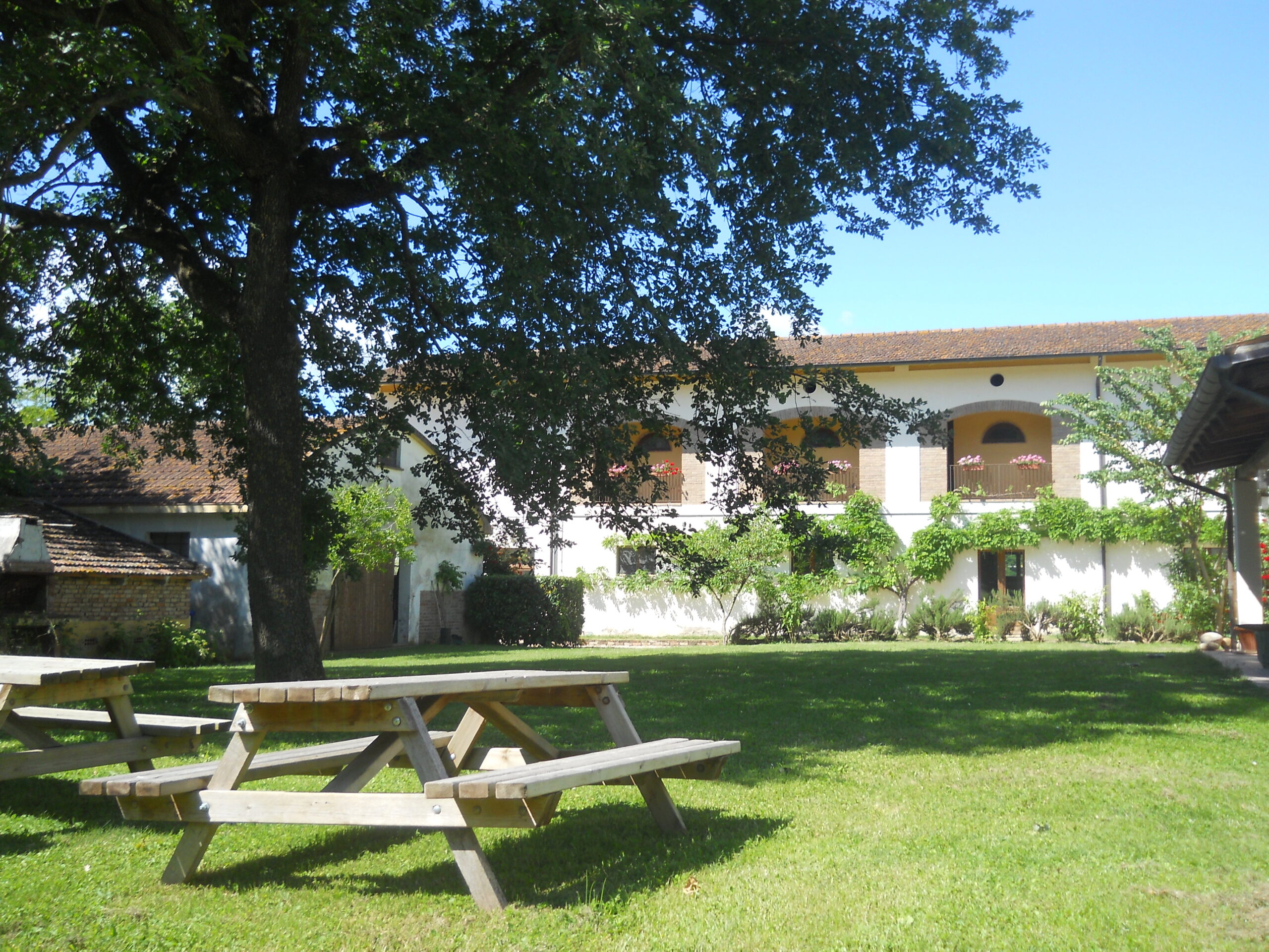Situata nel centro aziendale, LA BADIA è un grande casale suddiviso in sei camere con bagno per un totale di 22+2 posti letto. Una delle camere è priva di barriere architettoniche e ha il bagno attrezzato con una grande doccia a filo pavimento. Al piano terra c’è un salone di 114 mq con camino, tavoli e divani e una cucina attrezzata per 25 coperti; nella loggia esterna si trova un comodo barbecue . Nel prato c’è una piscina con solarium attrezzato. Infine il grande parcheggio privato con ricovero coperto per le motociclette contribuisce a rendere l’intera struttura un luogo ideale per il soggiorno di comitive che desiderano l’uso esclusivo degli spazi interni ed esterni, con gestione autonoma della cucina.